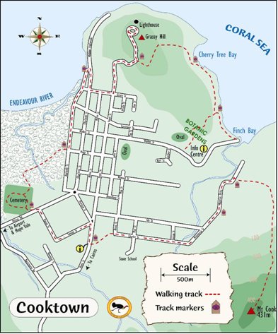Map of the Cooktown Scenic Rim walking trail courtesy Footloose publications