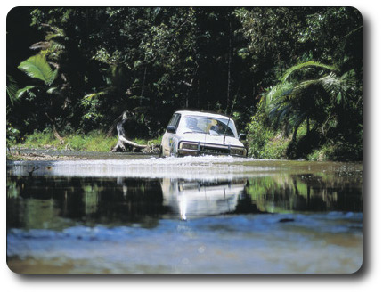4WD at Crossing, Daintree, Queensland. Courtesy of Tourism Queensland